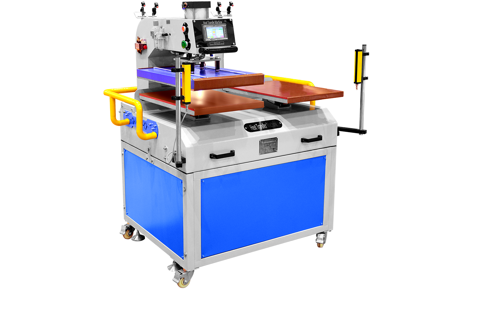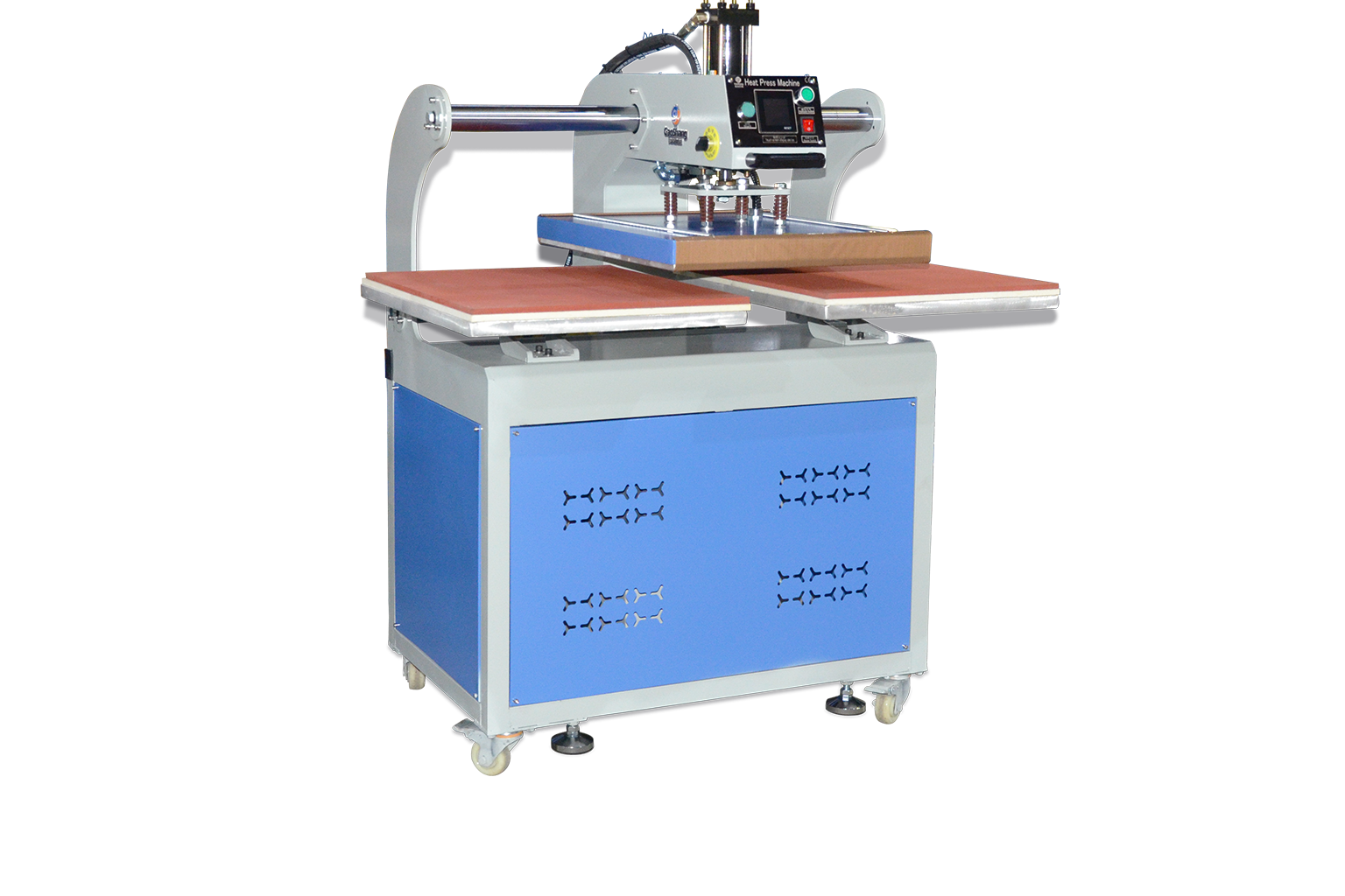 Big size flatbed printing is achieved,both pneumatic and hydraulic can deliver the even pressure to every corner of plate,making transfer accurate and vivid transfer results.